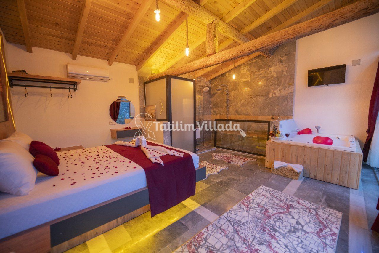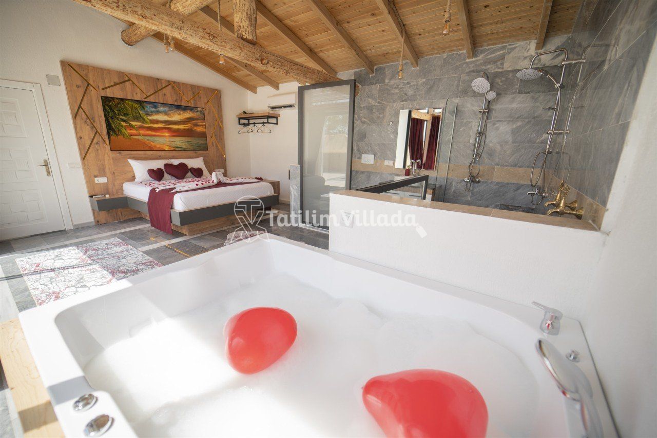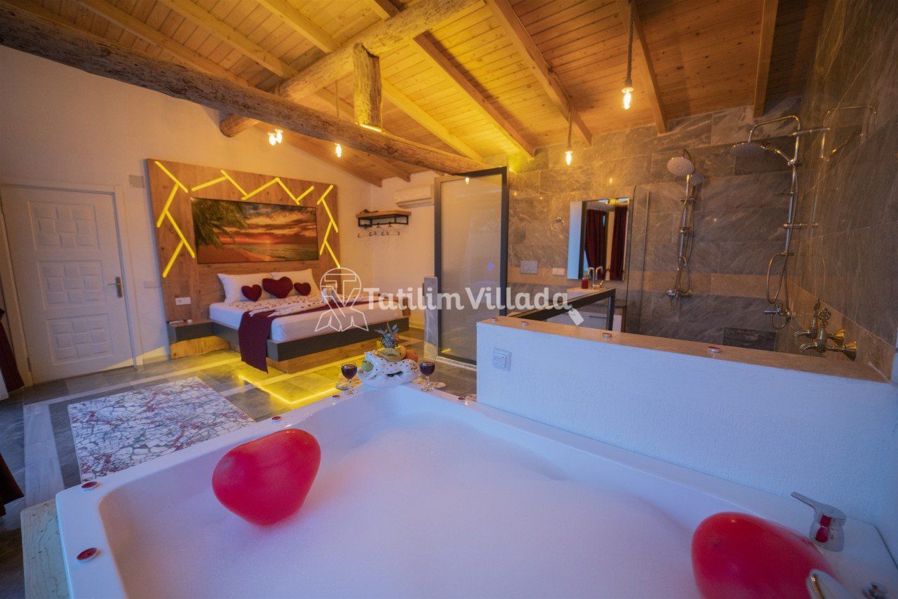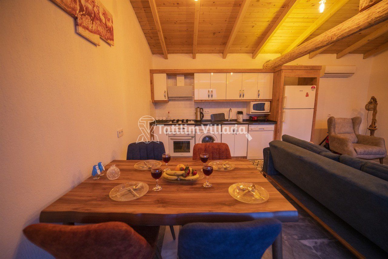 Villamızın modern mutfağı, eksiksiz araç-gereçleri ve konforlu eşyaları sayesinde kendinizi evinizde gibi hissedebilecek ve rahat bir tatil geçirme imkanı bulabileceksiniz. Ayrıca villamız da bulunan geniş jakuzive özel yüzme havuzu sayesinde dinlenebilecek ve eğlenceli saatler geçirebileceksiniz.