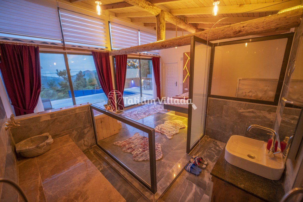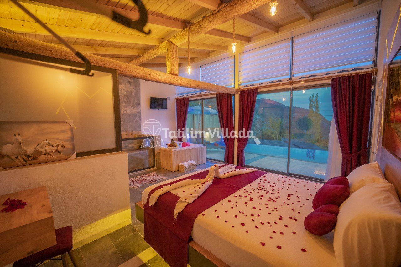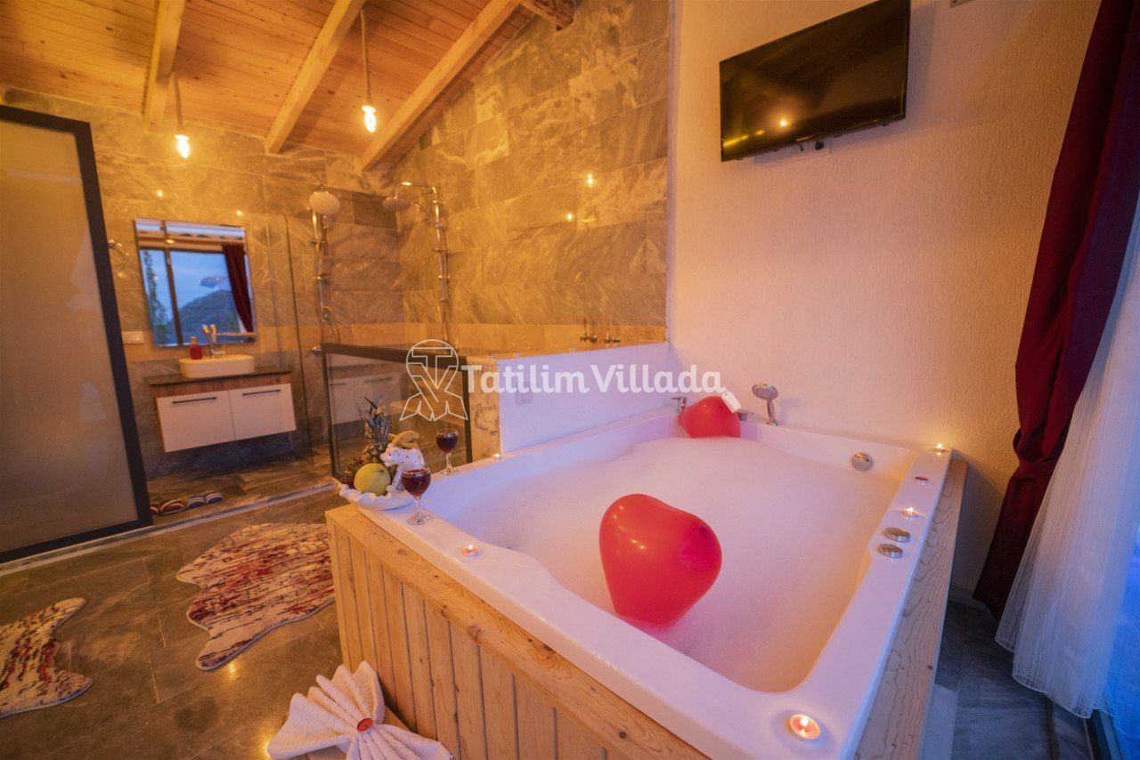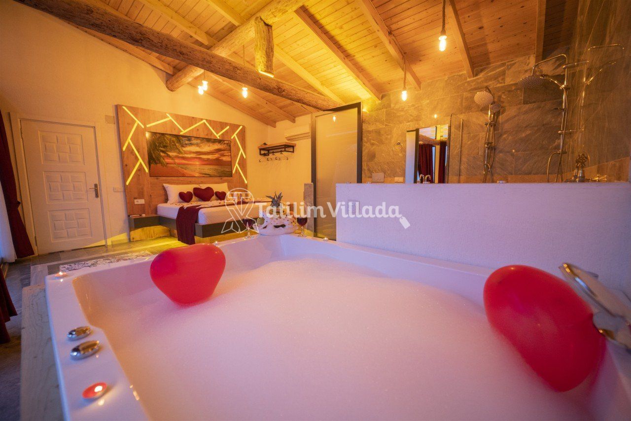 Villamızın modern mutfağı, eksiksiz araç-gereçleri ve konforlu eşyaları sayesinde kendinizi evinizde gibi hissedebilecek ve rahat bir tatil geçirme imkanı bulabileceksiniz. Ayrıca villamız da bulunan geniş jakuzive özel yüzme havuzu sayesinde dinlenebilecek ve eğlenceli saatler geçirebileceksiniz.