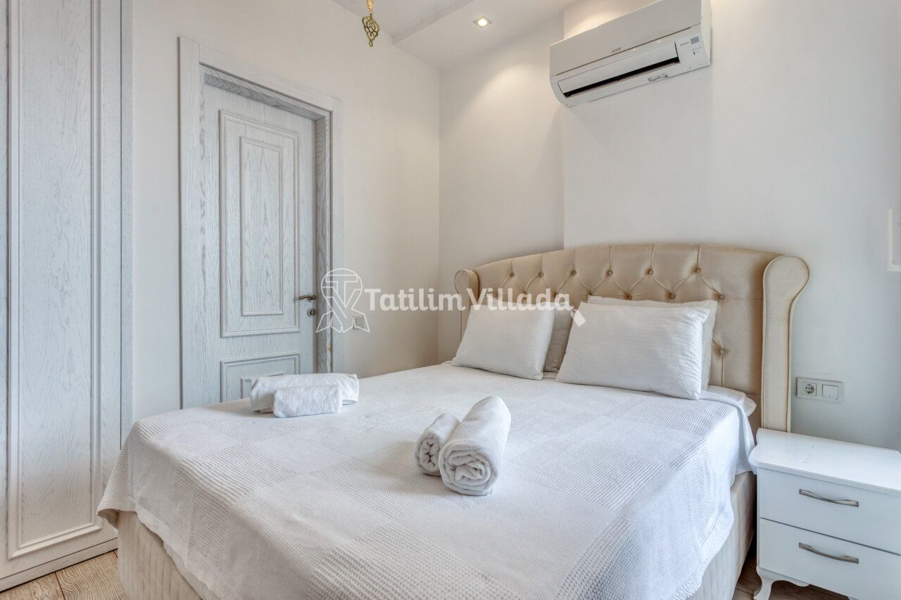 - 2.Yatak odası ; 2 adet tekli yatak , klima , TV , makyaj masası , elbise dolabı , komodin , tuvalet , banyo , deniz manzaralı balkon mevcuttur.