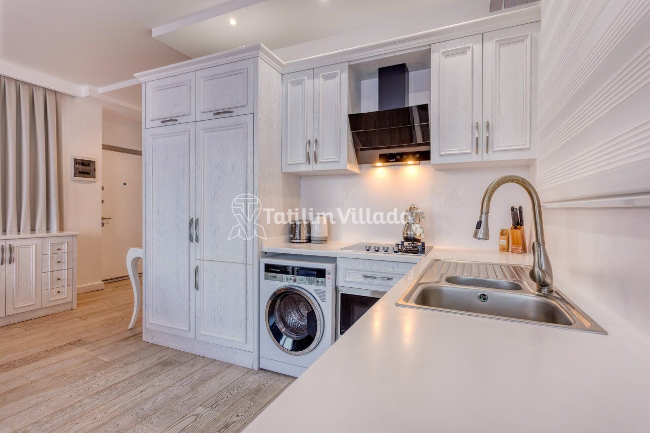 - Modern Amerikan Mutfak ; bulaşık makinesi , buz dolabı , çamaşır makinesi , mikrodalga fırın , ankastre ocak seti , ekmek kızartma makinesi mevcuttur. Normal fırın bulunmamaktadır.