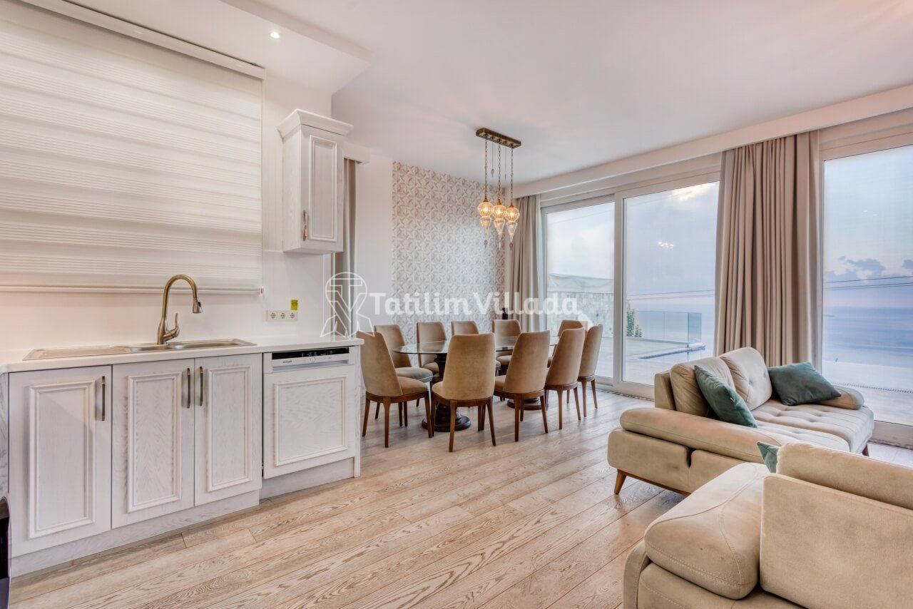 - En alt katında açık mutfaklı modern ve kullanışı açısından rahat edebileceğiniz imkanlar olup lüks ve konforlu salona sahiptir.