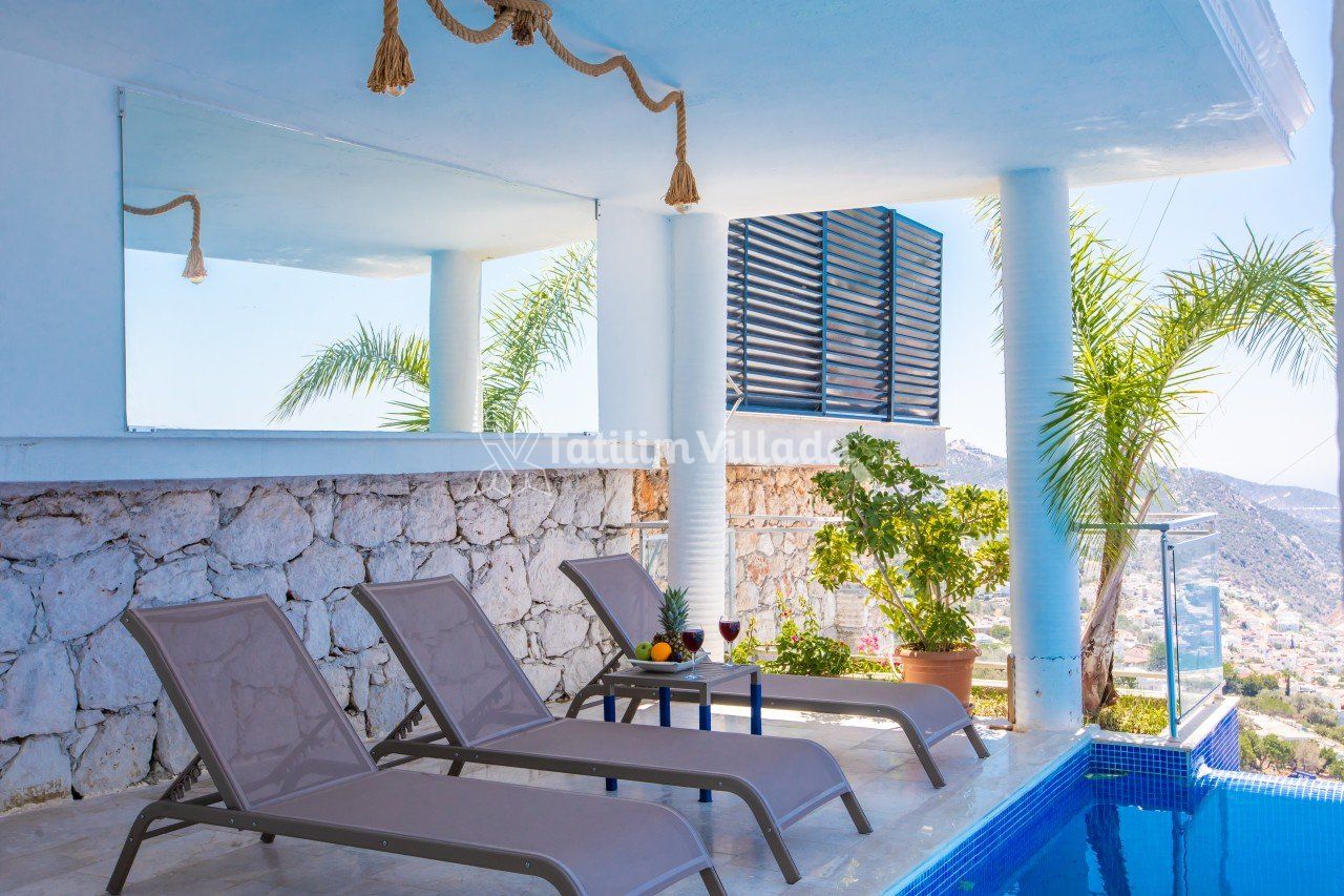 Villamız 4 yatak odalı olup 8 kişilik konaklama kapasitesine sahiptir. Villamız tamamen deniz manzaralıdır.