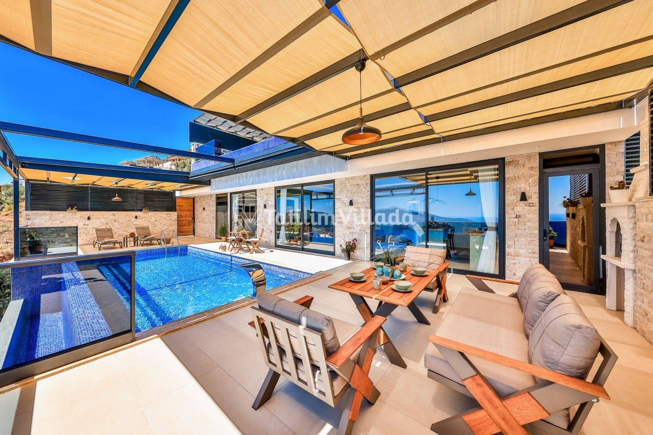 Kalkan Sarnıçbaşı mevkiinde bulunan lüks villamız balayı çiftlerimiz için özel olarak 1+1 şeklinde tasarlanmıştır.