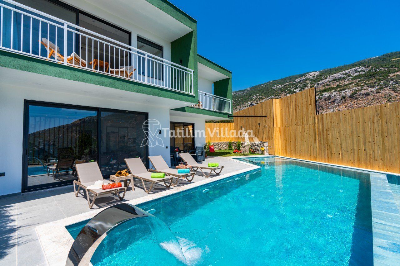 Villa Kızılkaya; Kalkan Akbel' de, 6 kişilik, ultra lüks ve modern, saunalı, jakuzili, mini sinema salonlu, çocuk havuzlu, muhafazakar balayı villasıdır.
