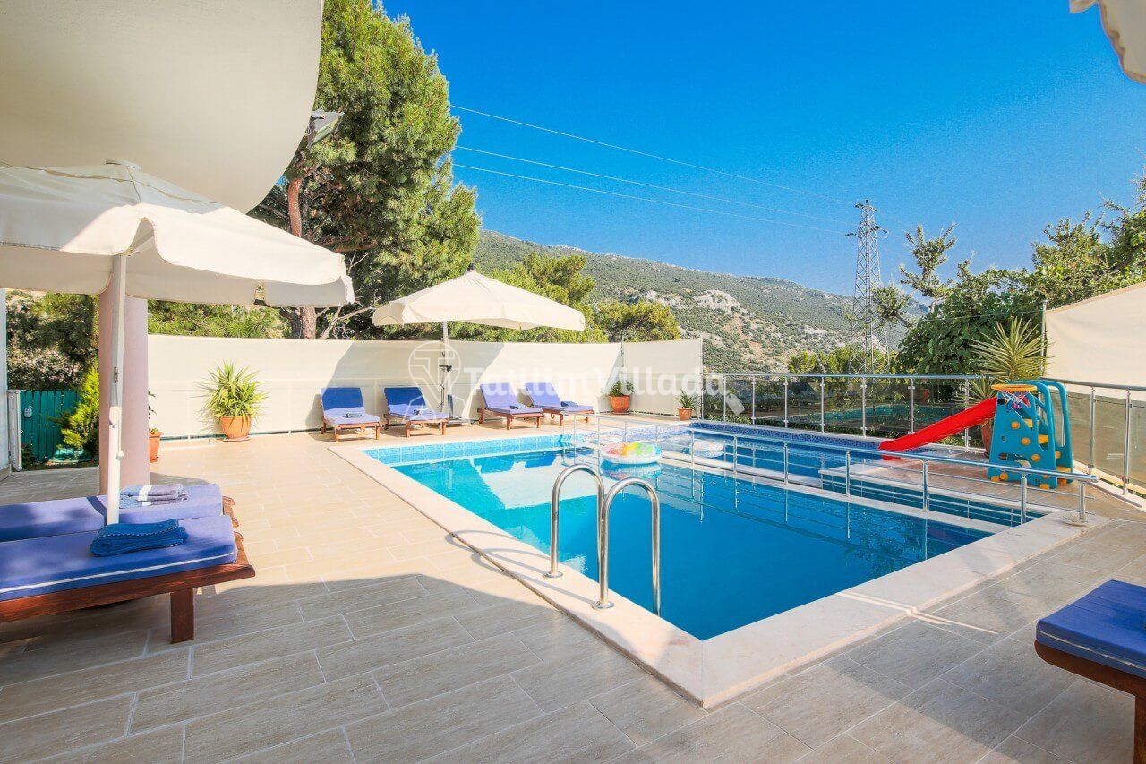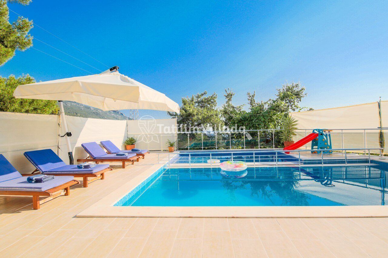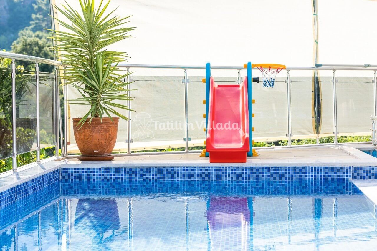 - Kiralık villamızın şahsi yüzme havuzu ve çocuk havuzu olup tatilci kalabalık ailelerimiz ve arkadaş grupları için ideal bir villadır.