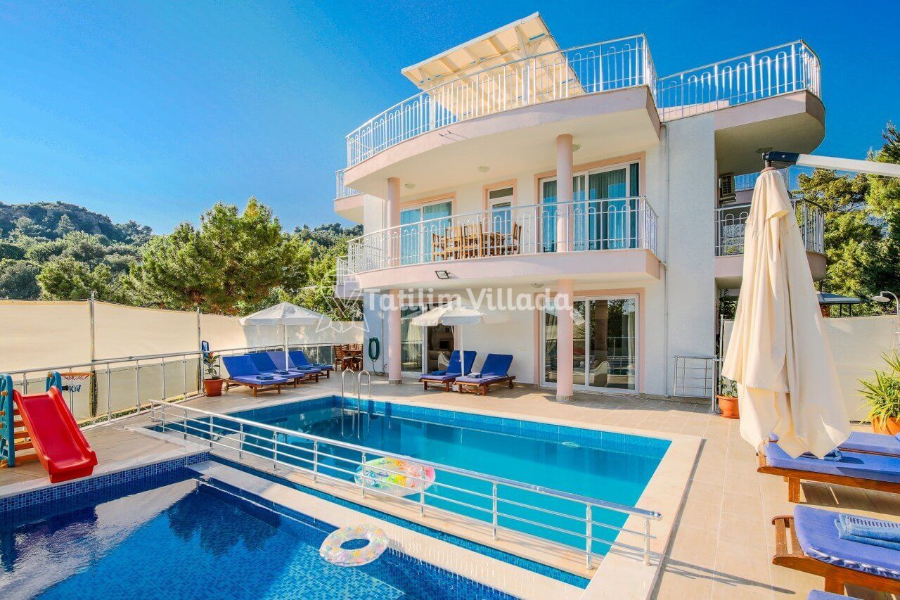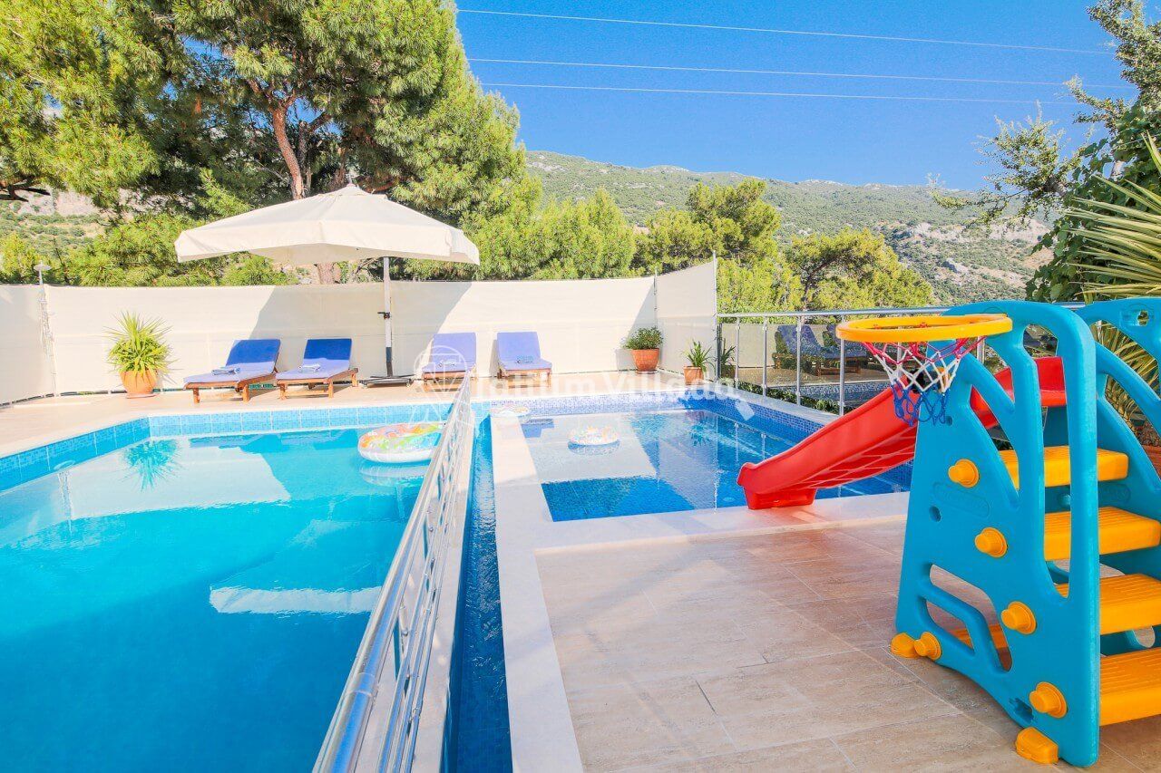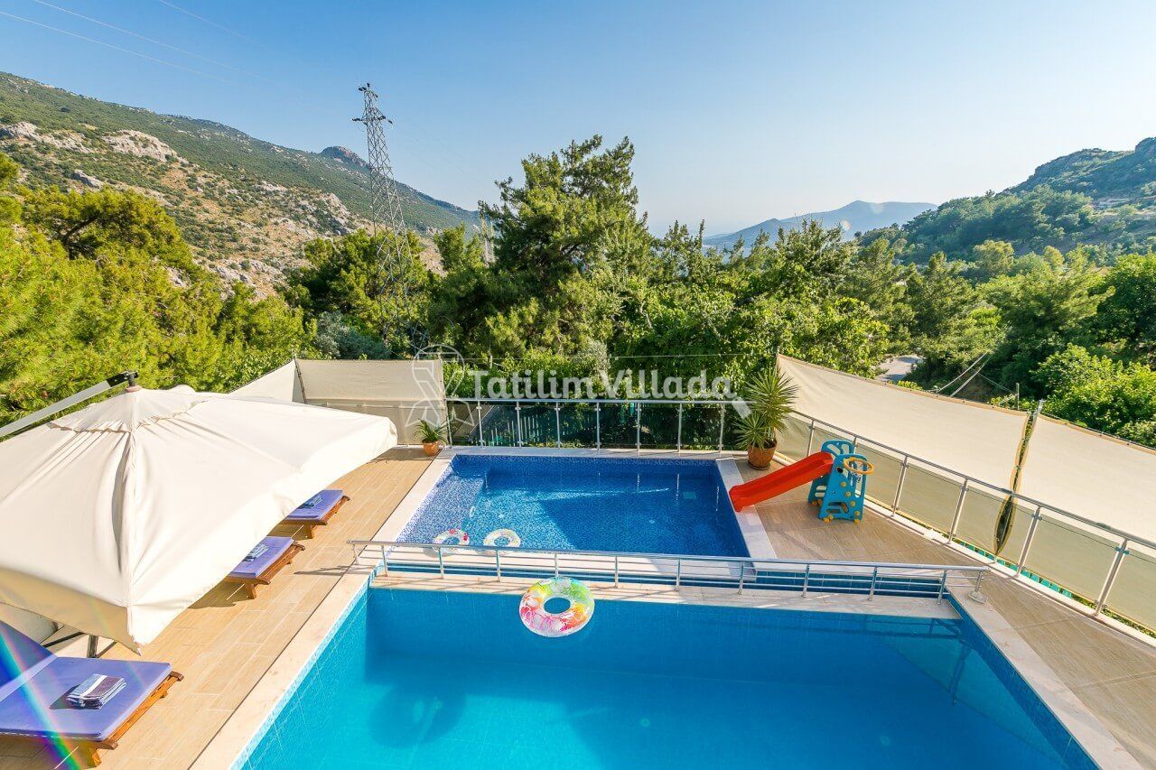 - Kiralık villamızın şahsi yüzme havuzu ve çocuk havuzu olup tatilci kalabalık ailelerimiz ve arkadaş grupları için ideal bir villadır.