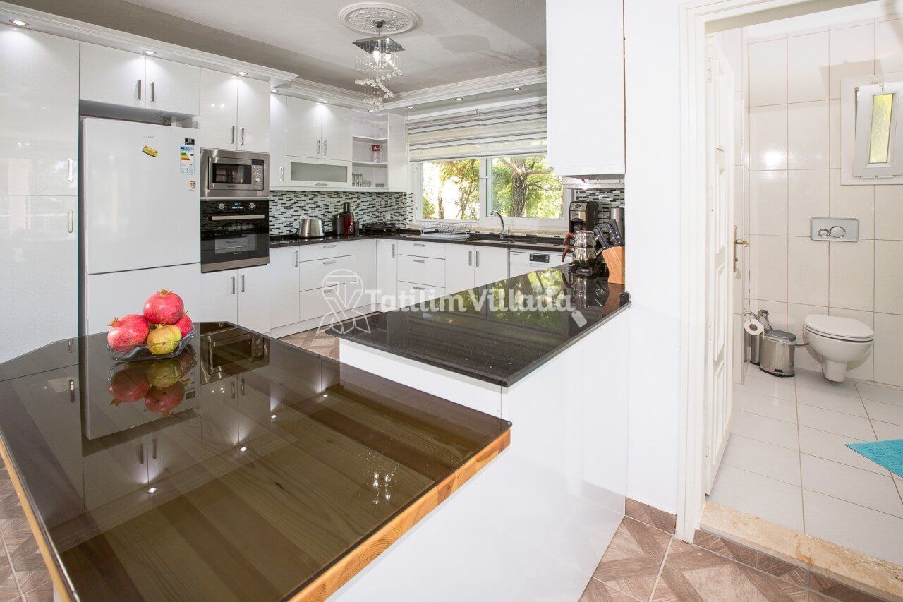- Villa Hilal tam donanımlı mutfak malzemeleri ile açık mutfaklı, modern ve kullanım açısından rahat edebileceğiniz imkanları olan lüks ve konforlu bir salonlu kiralık yazlığımızdan birisidir.