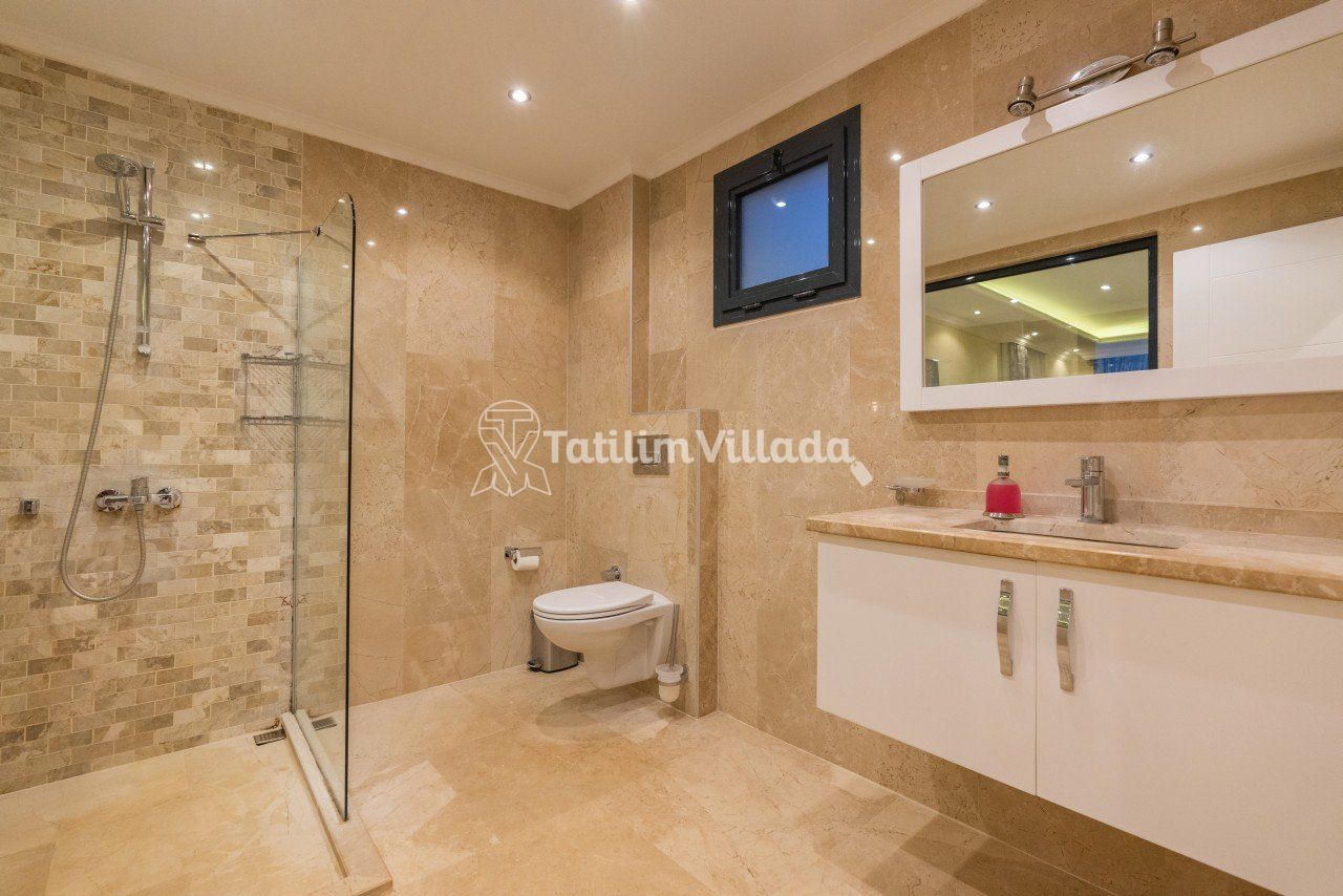 Zemin kattaki oda havuz başına açılmaktadır. Bu özelliği ile bu villamız yaşlı misafirlerimizin konaklamasına imkan sağlamaktadır.