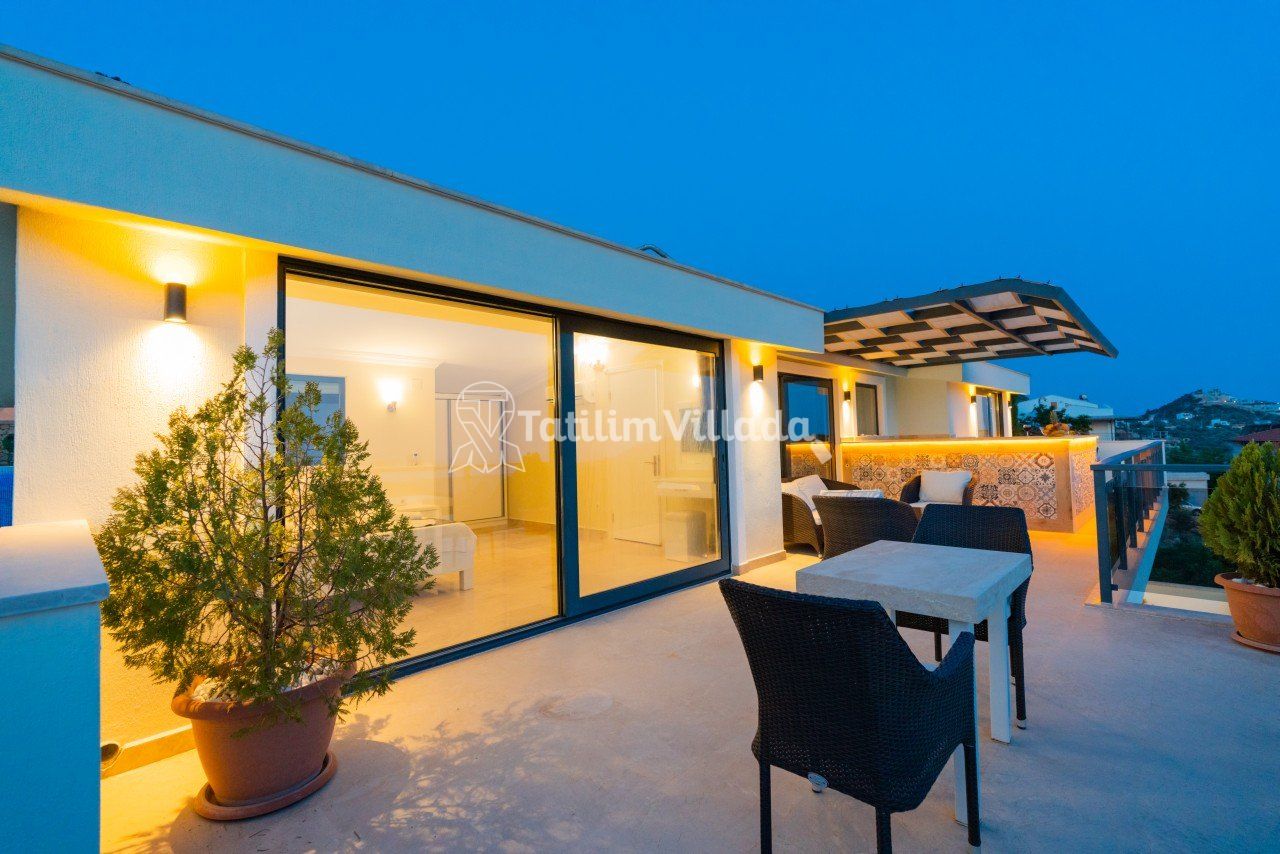 Ayrıca çatı katında da bir adet jakuzi mevcuttur. Keyifli iç ve dış dizayna sahip bu villamızda konaklarken akşamları mangal keyfi yapabilir, yüzebilir ve gün batımında muhteşem güneşin denizle dansını seyredebilirsiniz.