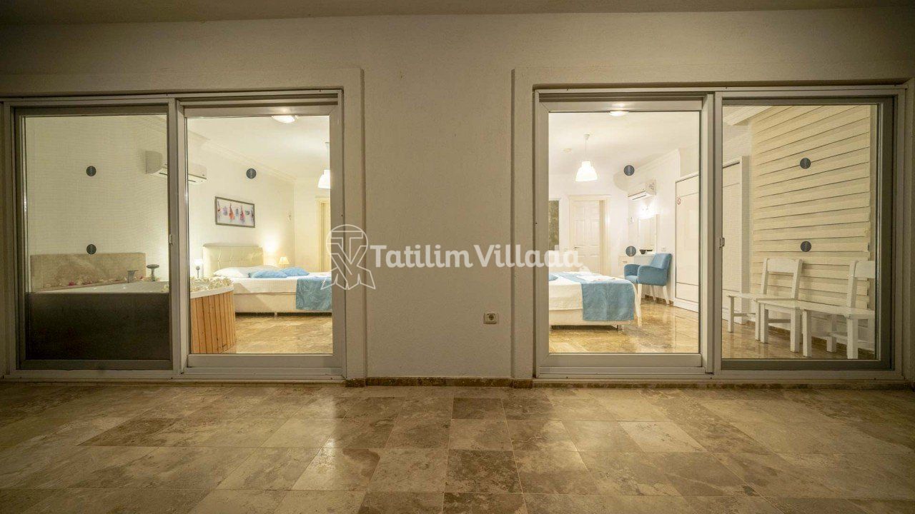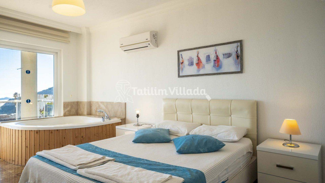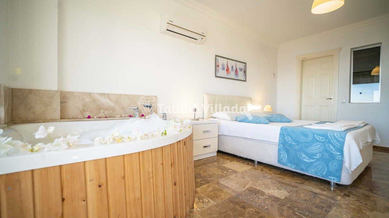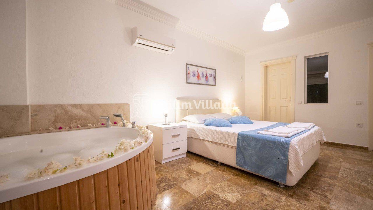 - 4 kişi kapasiteli villamızın 2 yatak odası ve her odada ebeveyn banyosu olup sadece bir odamızda jakuzi bulunmaktadır.