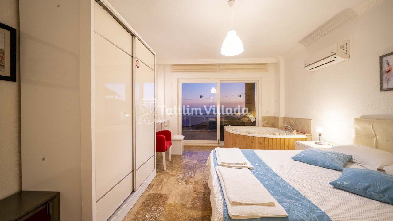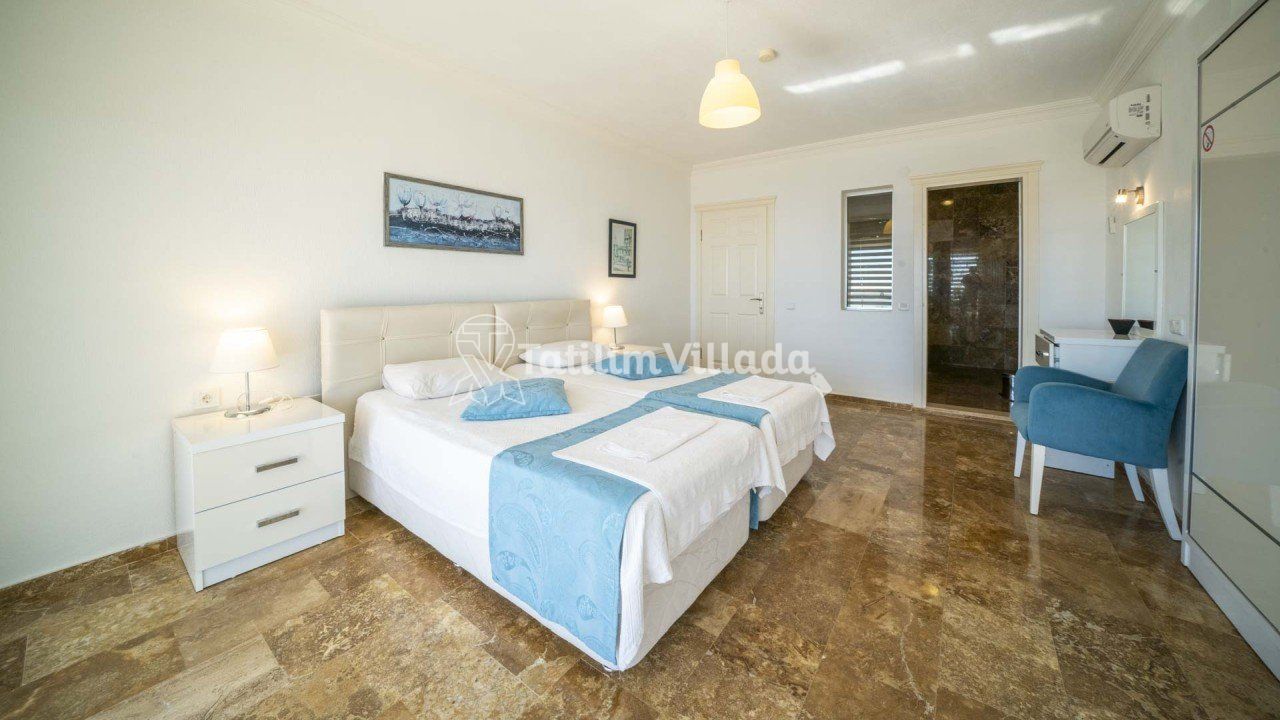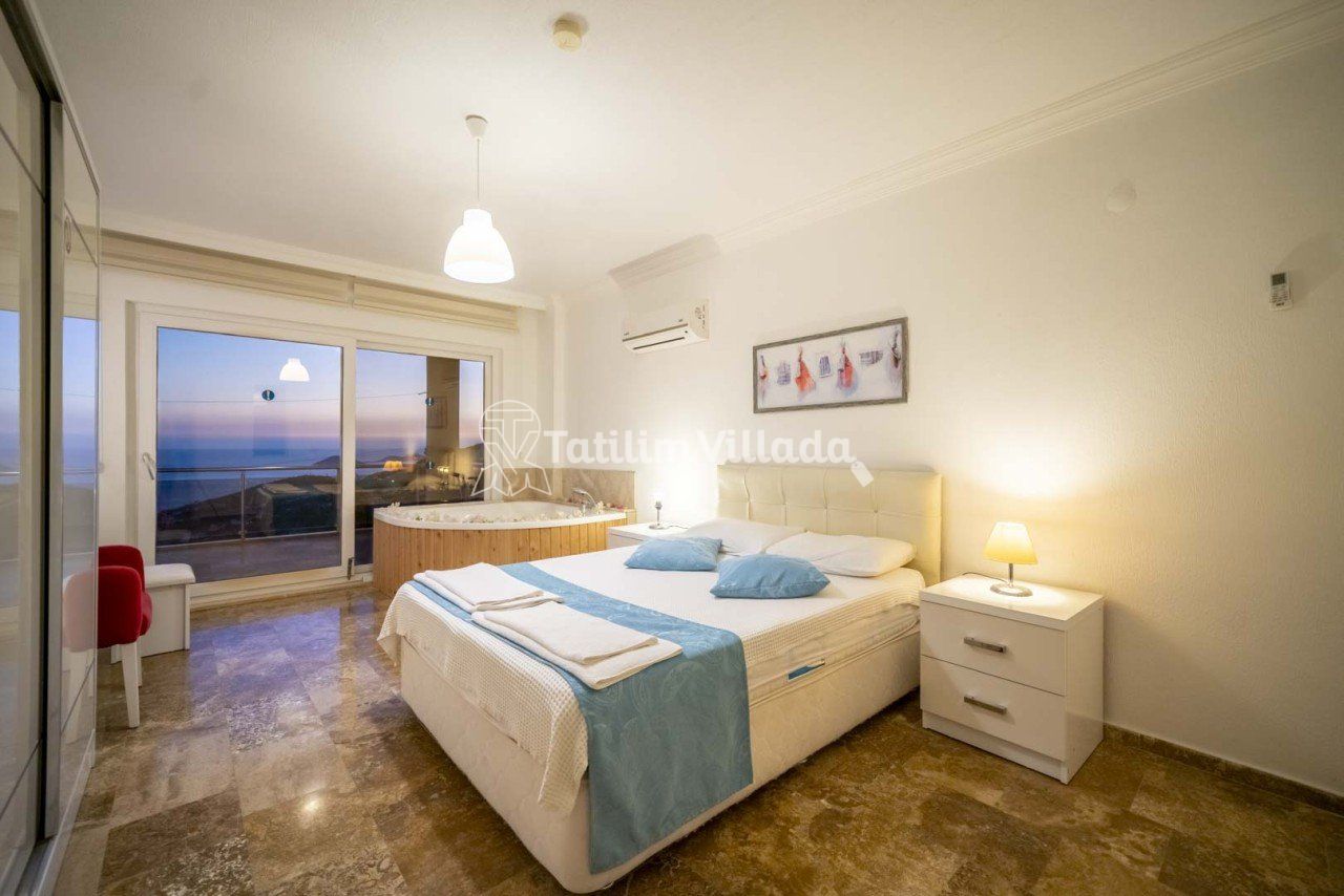 - 4 kişi kapasiteli villamızın 2 yatak odası ve her odada ebeveyn banyosu olup sadece bir odamızda jakuzi bulunmaktadır.