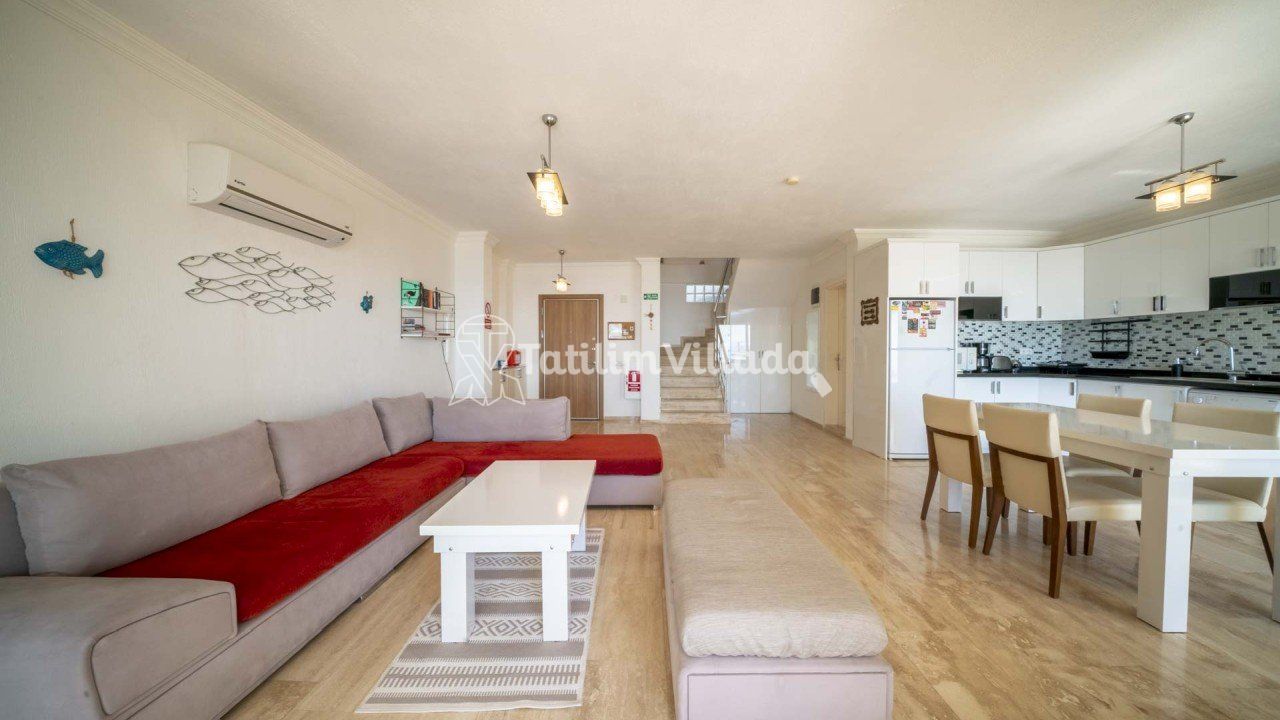 - Naz ihtiyacınız olan donanımlı mutfak araç gereçlerine sahip açık mutfaklı, modern ve kullanım açısından rahat edebileceğiniz imkanları olan şık ve konforlu bir salonlu kiralık villalarımızdan birisidir.
