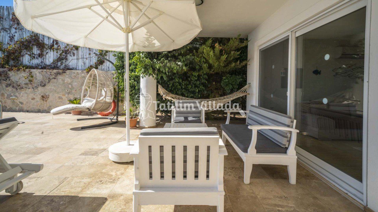 - Şezlonglar , pergola , mangal , masa ve sandalyeler bulunmaktadır.