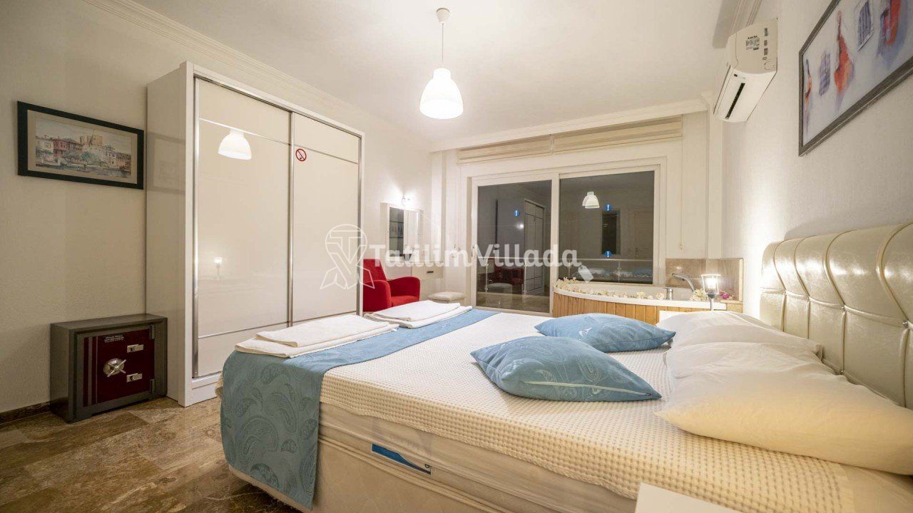 - 1. Yatak odası ; 1 adet çift kişilik yatak , elbise dolabı , makyaj masası , komodin , saç kurutma makinesi , klima , jakuzi , banyo ve tuvalet bulunmaktadır.