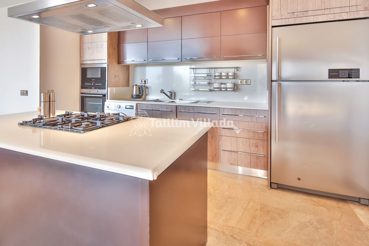 - Modern Amerikan mutfak, buzdolabı, bulaşık makinesi, çamaşır makinesi, ankastre fırın, mikrodalga fırın, ankastre 4’lü ocak, elektrikli su ısıtıcısı (ketıl ), masa ve sandalyeler, çeşitli mutfak araç ve gereçleri, havuz katına çıkış bulunmaktadır.