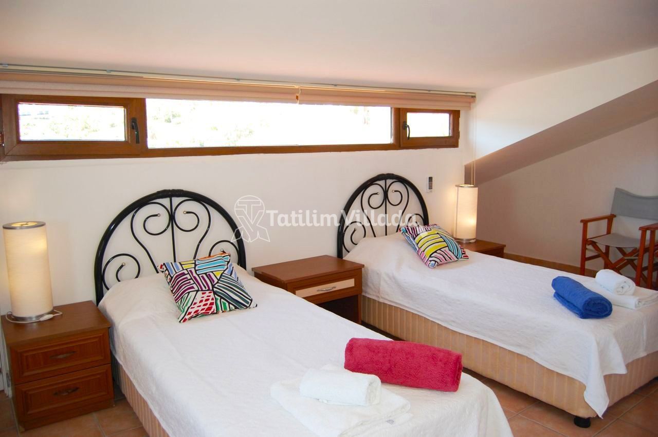 - 4. Yatak Odası: 1 Adet çift kişilik yatak bulunan bu yatak odamızda dilerseniz yatakları 2 adet tek kişilik konumuna getirebilirsiniz. Bu oda çatı katında olup minik donanımlı bir mutfağı ve banyo tuvaleti bulunmaktadır.