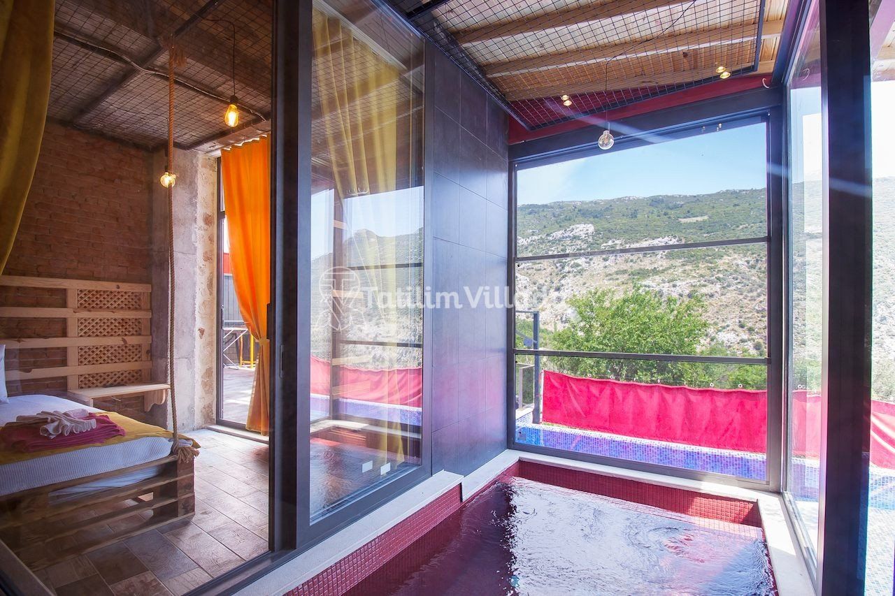 - 2 kişi kapasiteli villamızda 1 yatak odası oda içerisinde ebeveyn banyosu , jakuzi ve ısıtmalı kapalı havuzu mevcuttur.