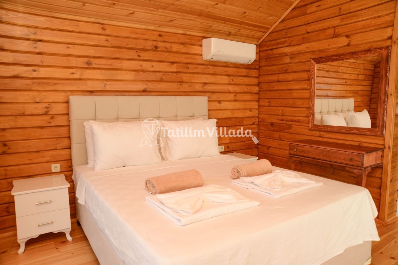 - 4 kişi kapasiteli villamızın 2 yatak odası olup her odada ebeveyn banyosu mevcuttur.